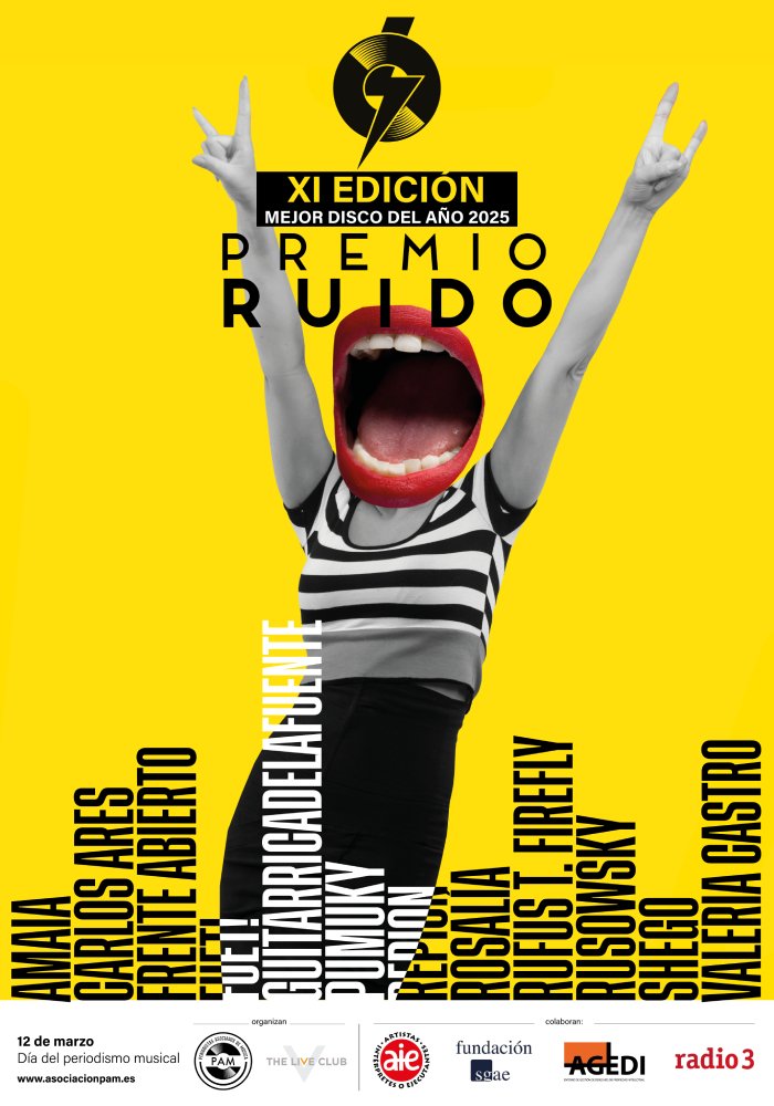 Premio Ruido está organizado por PAM y The Live Club y cuenta con la colaboración de AGEDI, AIE, la Fundación SGAE y Radio 3.